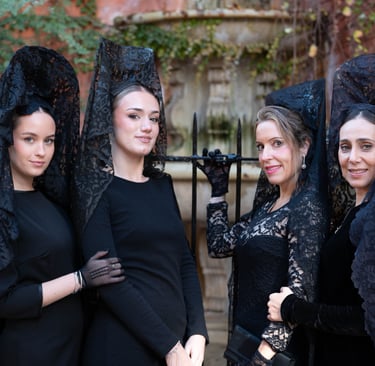 Desde la devoción hasta la celebración, rendimos homenaje a la tradición, al arte y a la esencia femenina que perdura con el paso del tiempo. Porque vestir de mantilla no es solo una costumbre: es una forma de expresar respeto, belleza y emoción compartida.
